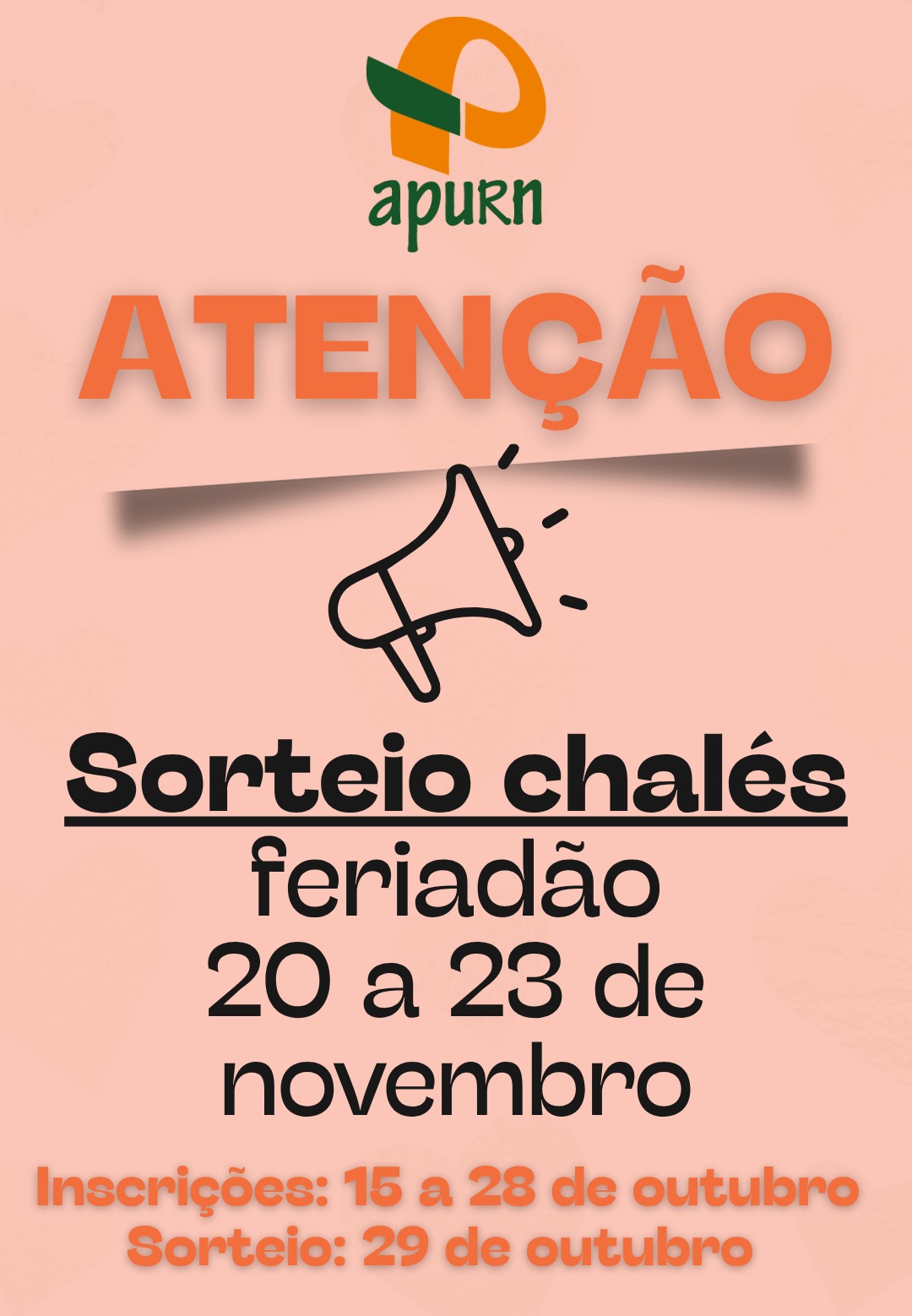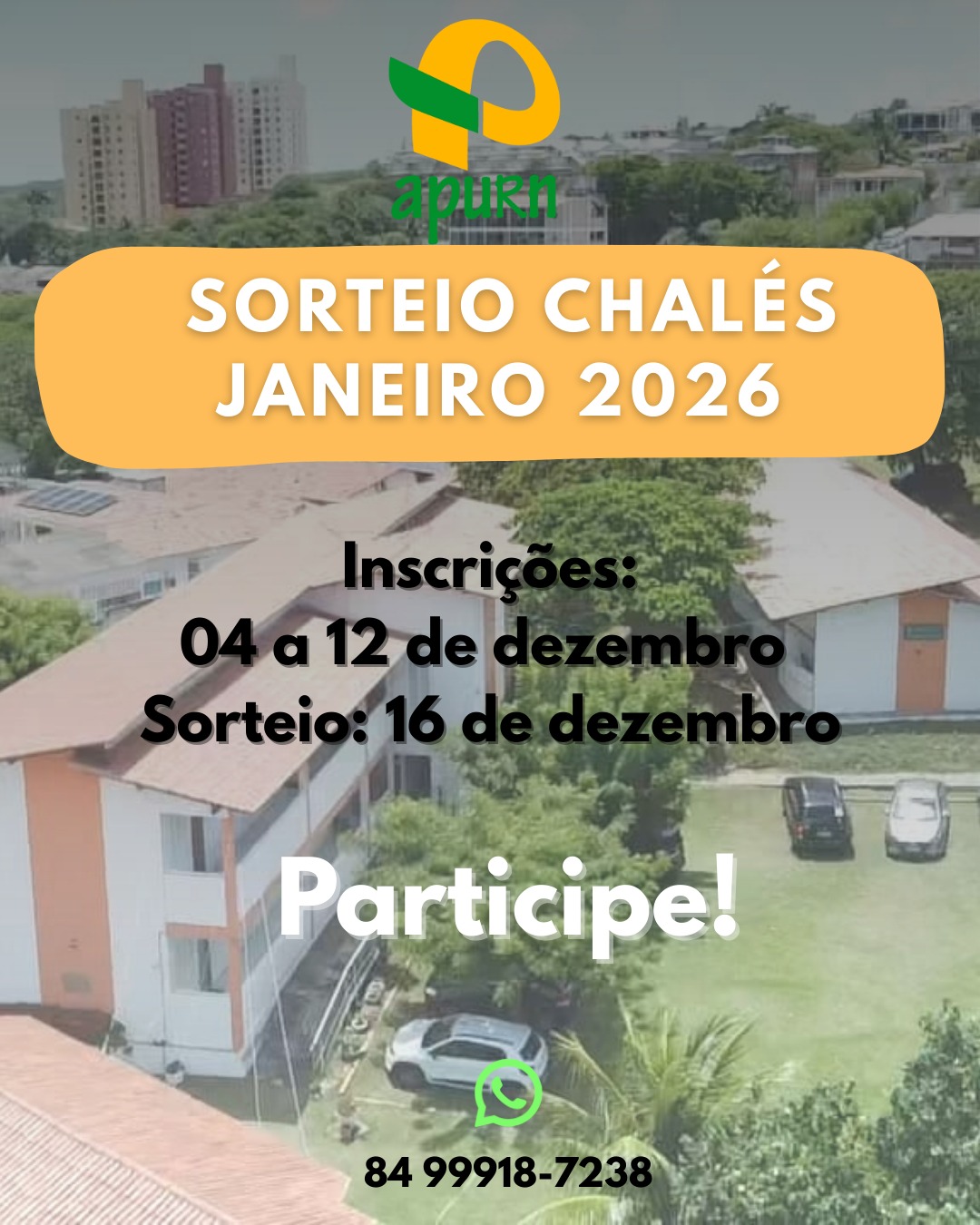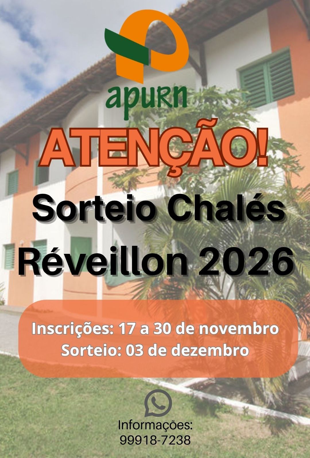 Estamos divulgando as informações sobre as inscrições e o sorteio para a ocupação dos chalés Varandas da APURN durante a última semana de dezembro de 2025 (Réveillon).